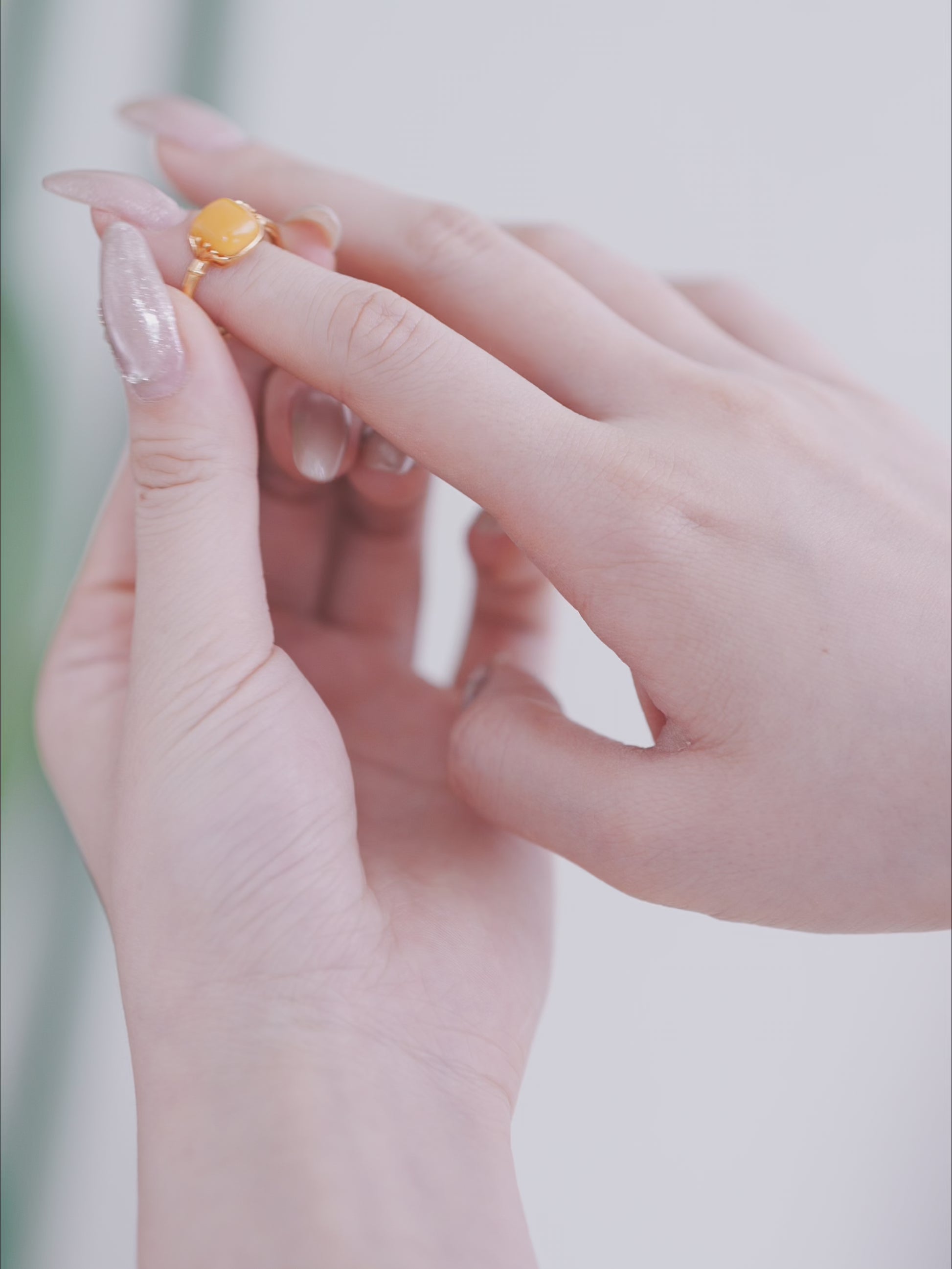 This Bamboo Zen Butterscotch Amber Ring pairs the warm, milky glow of Butterscotch Amber with the organic elegance of 18k gold-plated 925 sterling silver. Its nature-inspired design adds a sophisticated, peaceful touch to your daily style, available at CAEVI.